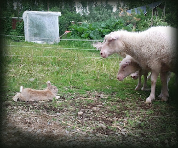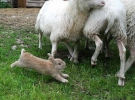 Видимо, кролик перенял повадки собаки-пастуха, которая отвечает за пастьбу овец на ферме. Получается у него, надо сказать, очень даже неплохо.