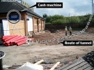 По данным полиции, на создание 30-метрового тоннеля у преступников ушло около шести месяцев. В тоннеле было установлено освещение, его потолок был укреплен подпорками. Согласно предположениям следователей, перед тем, как решиться на кражу банкомата, преступники просверлили в бетонном полу отверстие небольшого диаметра и осмотрели место, где располагался автомат, с помощью телескопической камеры.