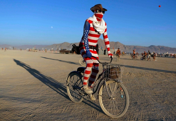 На знаменитый фестиваль Burning Man ("Горящий человек") в этом году приехало рекордное количество гостей — более шестидесяти тысяч человек. С понедельника по субботу участники и гости будут демонстрировать свои произведения искусства, костюмы и даже машины, которые по традиции полагается разукрашивать и переделывать до неузнаваемости.