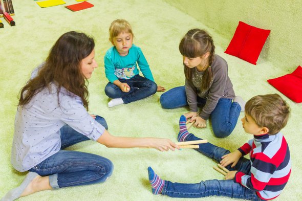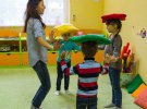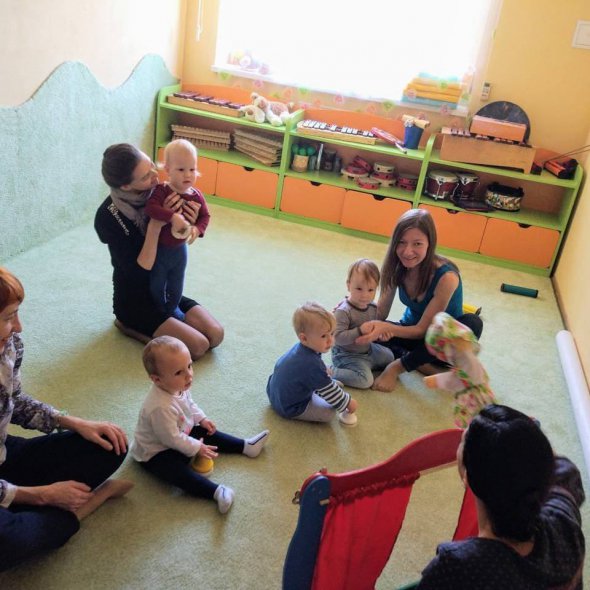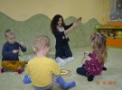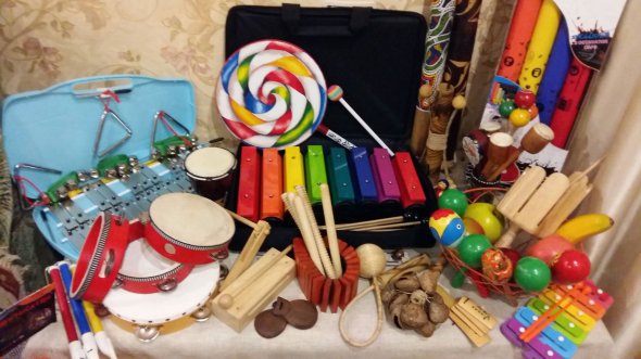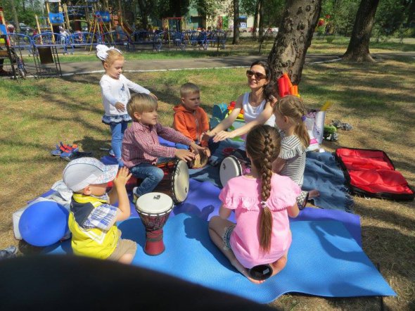 "В этом году взяла группу с малышами от года. Они занимаются с мамами. Дети в этом возрасте подпевают, любят двигаться и стучать не только по барабанам, но и по всему, что звучит, - делится Лилия, - У нас есть особое приветствие "Тилли-Милли-Бом!" По ступенькам из ткани и игра "Что говорит барабан ". Песни-игры обязательно сопровождаем игрой на элементарных инструментах. Иногда, малыши на занятии могут просто поиграть с крупами и слушать как поют и музицируют мамы. В первую очередь, для нас важно создать уникальную среду, в котором дети сами приобщаются к игре, начнут подпевать, некоторые говорят свои первые слоги или слова".