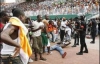 Арбитр встречи принял решение прекратить игру, которое болельщики "радостно" встретили выстрелами из ракетниц и другими имеющимися предметами.