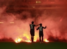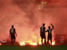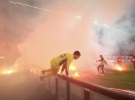А когда Вольфганг Штарк должен был дать финальный свисток, на трибуне гостей начались беспорядки. Сначала на газон полетели файеры, а затем высыпали и сами болельщики, явно не желающие мириться с участью любимого клуба. Судья был вынужден увести команды в раздевалки, пока полиция усмиряла буянов. Ситуация нормализовалась лишь через 20 минут. Выйдя на поле, берлинцы успели провести несколько сумбурных атак, которые закончились ничем.