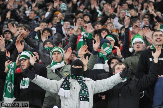 В ответ на такие действия весь стадион начал засвистуваты киевских ультрас. Им кричали "Позор!" и показывали средний палец. В фан-секторе "зелено-белых" в ответ тоже зажгли дымовые шашки. Также бросали на поле и в стюардов листки бумаги.