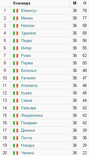 "Удинезе" одолел "Чезену" (1:0) и сравнялся с идущим на третьем месте "Наполи". Единственный мяч на четвертой минуте забил Диего Фаббрини, а у хозяев пенальти не реализовал Адриан Муту. На три очка от претендентов на бронзу отстал "Интернационале", который уступил на выезде "Парме" - 1:3. В других матчах "Болонья" переиграла "Катанию" (1:0), "Дженоа" одолела "Кальяри" (2:1), а "Фиорентина" не смогла победить "Новару" (2:2), сообщает официальный сайт УЕФА.