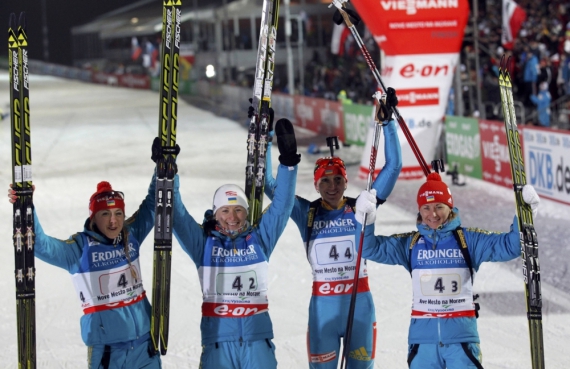 Команда в составе Юлии Джимы, Виты и Валентины Семеренко, и Елены Пидгрушной финишировала второй, уступив лишь сборной Норвегии.