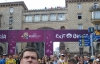В киевской фан-зоне Евро-2012 из туалета выходит женщина лет 50-ти в синем комбинезоне, в руках держит совок.