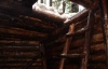 Над крыивкой - два метра почвы. Вход на глаз не определишь - он замаскирован под стеллаж у печки, который заставлен дровами. Однако следует сильно отодвинуть шкаф влево, как за ним открывается узкий каменный проход в убежище. Сверху видна табличка с трезубцем и надписью - "здобути або не бути".