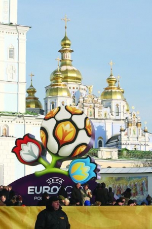 На Михайловской пл. в Киеве вчера представили логотип и слоган Евро-2012. В пятницу исполнительный комитет Европейской футбольной федерации (УЕФА) подтвердил, что матчи финальной части Евро-2012 примут четыре украинских города — Киев, Харьков, Донецк и Львов. Финальный поединок состоится в столице Украины.