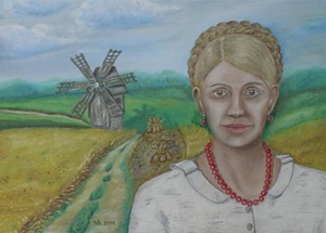 — Раньше у нас здесь политического портрета не было ни разу. Поэтому на эту работу народ внимание обращает: дети пальцами показывают, рассматривают. Двое старших людей уже приценивались, — думаю, за пару дней купят ее, — торговец картинами 71-летний Валерий Кульчицкий на ул. Валовой в центре Тернополя продает портрет Тимошенко на фоне пшеничного поля.