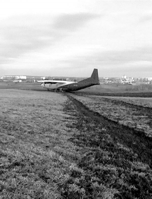 Два дня стоит посреди поля возле черновицкого аэропорта грузовой самолет Ан-12. В воскресенье около 14.00 он сошел со взлетной полосы. Сбил забор и пропахал около 300 м земли.