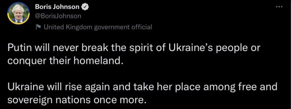 Он не завоюет родину этого народа, написал в своем Twitter премьер-министр Великобритании Борис Джонсон.