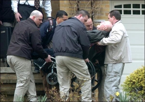 Шесть работников иммиграционной полиции вынесли Демянюка в инвалидной коляске из его дома в Кливленде, штат Огайо. Мужчина едва дышал. Ему к лицу прикладывали кислородную маску. Вокруг собрались родственники, умолявшие оставить его в покое.