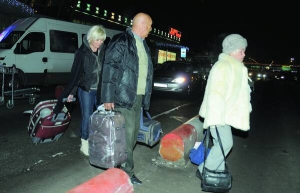 "Вчера два самолета в Египет отправили. Полные, под завязку. Арабы стреляют, убивают, а нашим - пофиг", - говорит приятелю мужчина лет 30 в кожаном полушубке. Разговаривают во вторник возле входа в аэропорт "Борисполь". На обоих военные штаны, которые носят пограничники.