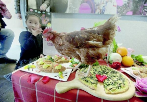 19 января в китайском Пекине защитники животных устроили вегетарианский обед для курицы Черри. Ее угощали фруктовыми кашами, фаршированными овощами, супом из сельдерея и белых грибов и бананово-шоколадным тортом.