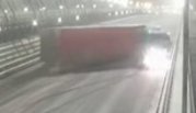 Утром в пятницу, 15 января, на Южном мосту Киева занесло грузовик. По словам водителя, он не справился с управлением из-за сложных дорожных условий.