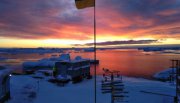 На фото, далеко в лучах солнца видно айсберг, который напоминает пирамиду. Снимки опубликованы на странице Национального антарктического научного центра в Facebook.