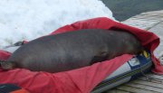 Возле украинской станции "Академик Вернадский" в Антарктиде заснул морской котик.