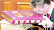 В столичном Доме учителя презентовали факсимильное переиздание Пересопницкого Евангелия книги, на которой присягают президенты Украины во время инаугурации. Издатели создали копию Евангелия ХVI в., которое хранят в столичной ...