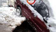 В Киеве автомобиль на улице Ольжича наполовину провалился под асфальт.