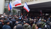 ... часом біля будівлі Державної Ради Криму відбулася церемонія відкриття меморіальної таблички ... й мітинг противників і прихильників відділення Криму від Росії. Серед перших були ... >Наступного дня адміністративні будівлі в Криму захопили так звані зелені чоловічки ...